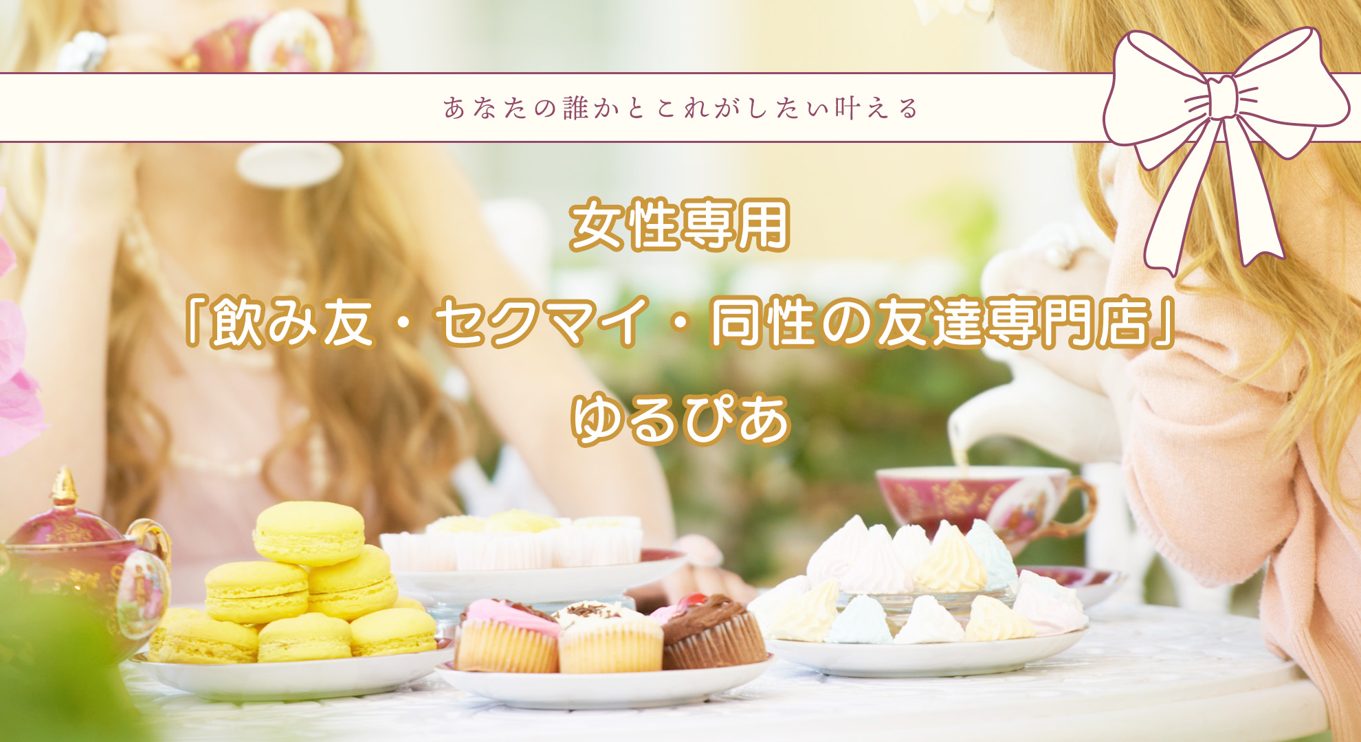 ディスティニーグループから出来た女性専用の「友達づくり専門店」! ゆるぴあの会員サイトになります! 当店はヘルス行為は一切なしのキャストと友達のように過ごすことが出来る専門店です。 レズ風俗という冠ではなく、対面で一緒に遊んだり、お茶をしたり、ご飯を食べたり気軽な「楽しい」を味わうことの出来るお店です。